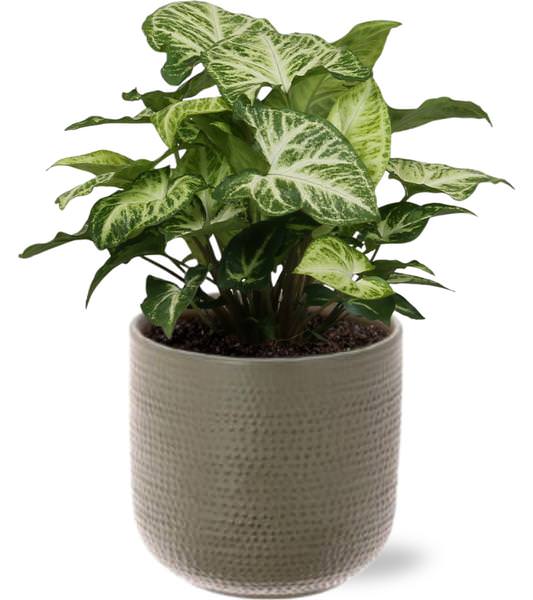 Syngonium Arrow – Ø12cm – ↕25cm + Aresso Pot D13x12,5cm – Grau Grün
